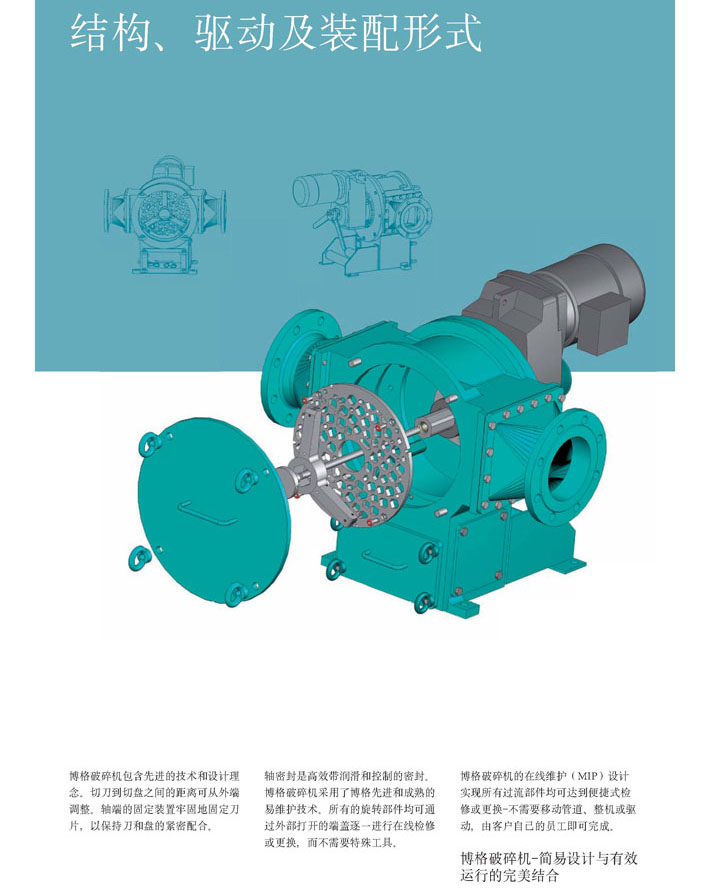 無障礙運行:博格破碎機與博格凸輪泵的完美組合可以帶來介質(zhì)的平穩(wěn)輸送。破碎機將流體中的固體顆粒切割破碎,均勻的流體介質(zhì)由下游的凸輪泵輸送出去。