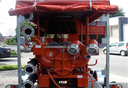 博格移動排水泵車其流量范圍為5~1000m3/h,設備可選用柴油或電力發(fā)動機。 消防泵車圖